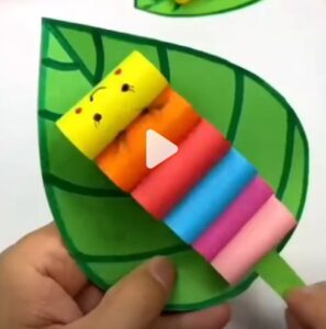3. Vyber si, která z ruliček bude hlava. Na tu namaluj oči a pusu a přilep 2 černé tenké prouzky jako tykadla.